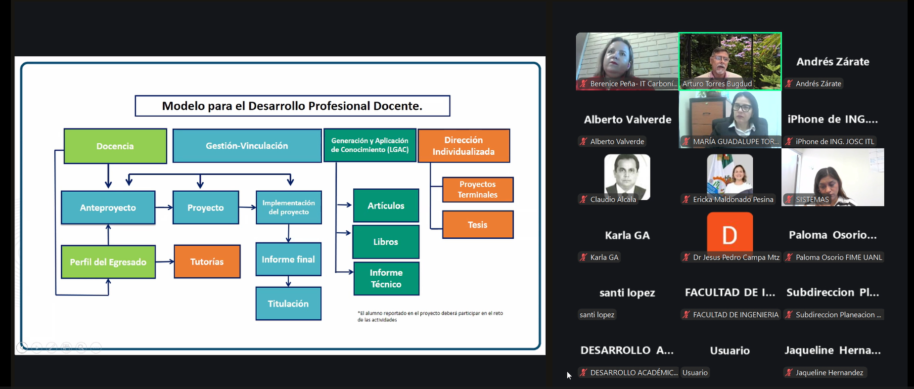 El 23 de septiembre de 2025, el Mtro. José Omar Saldívar Correa y el Ing. Juan José Echevarría Reyes, secretario de la Región II y secretario ejecutivo de la Asociación Nacional de Facultades y Escuelas de Ingeniería (ANFEI), respectivamente, inauguraron el conversatorio virtual «Perfil PRODEP y cuerpos académicos». El evento fue impartido por el Dr. Arturo Torres Bugdud, coordinador de Enlace de la Región II de la ANFEI y subdirector de Planeación e Innovación de la Facultad de Ingeniería Mecánica y Eléctrica (FIME) de la Universidad Autónoma de Nuevo León (UANL), quien estuvo acompañado de la Mtra. Sammara Elizabeth Bustos Arista, coordinadora administrativa de Planeación de dicha institución.